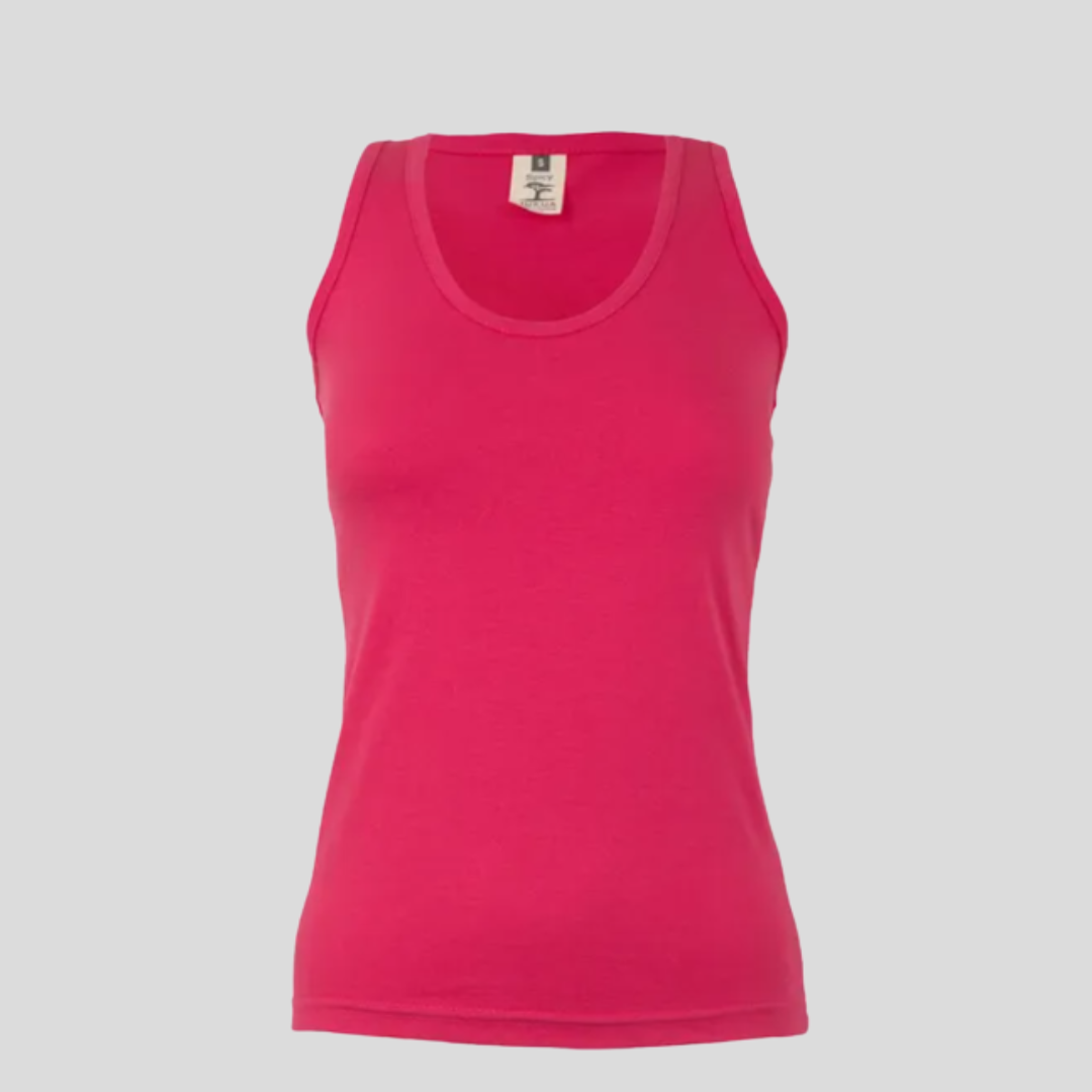 Camiseta de tirantes con espalda nadadora, ribete del mismo tejido en cuello y sisas.